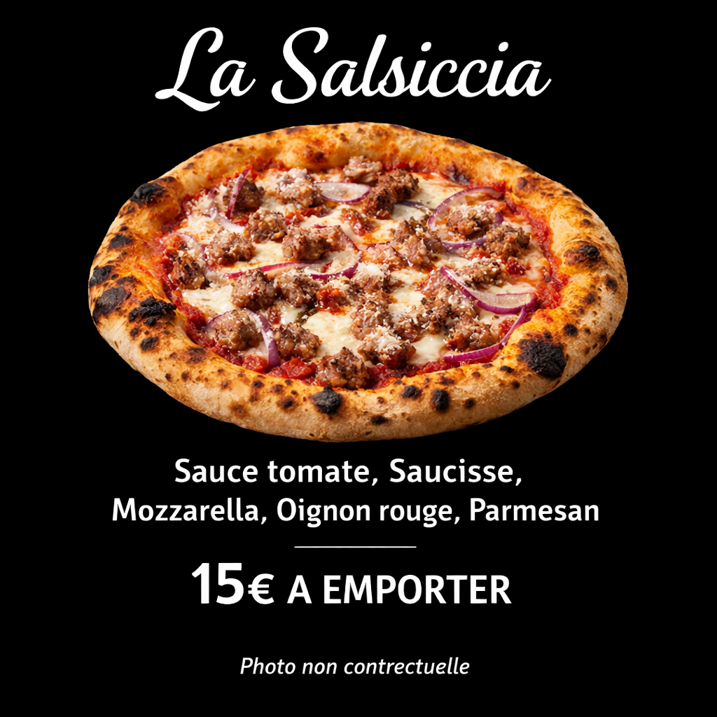 TOMATE,SAUCISSE,MOZZARELLA,OIGNON ROUGE,PARMESAN.